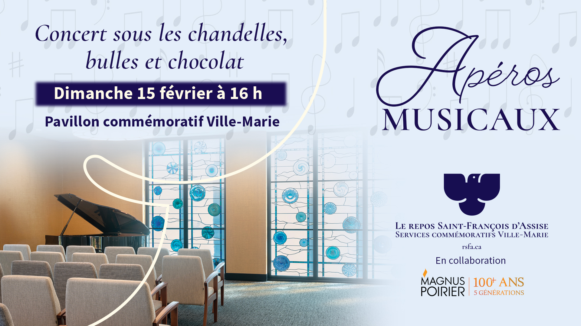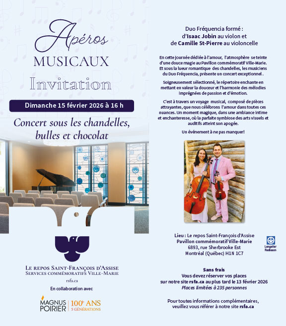 En cette journée dédiée à l'amour, l'atmosphère se teinte d'une douce magie au Pavillon commémoratif Ville-Marie. Et sous la lueur romantique des chandelles, les musiciens du Duo Fréquencia, présente un concert exceptionnel.